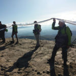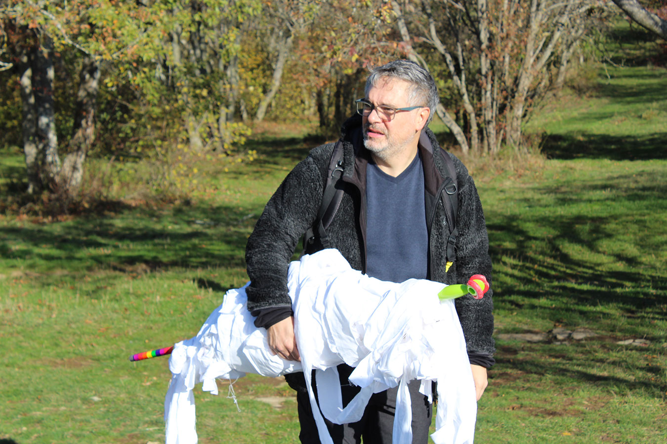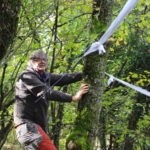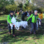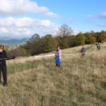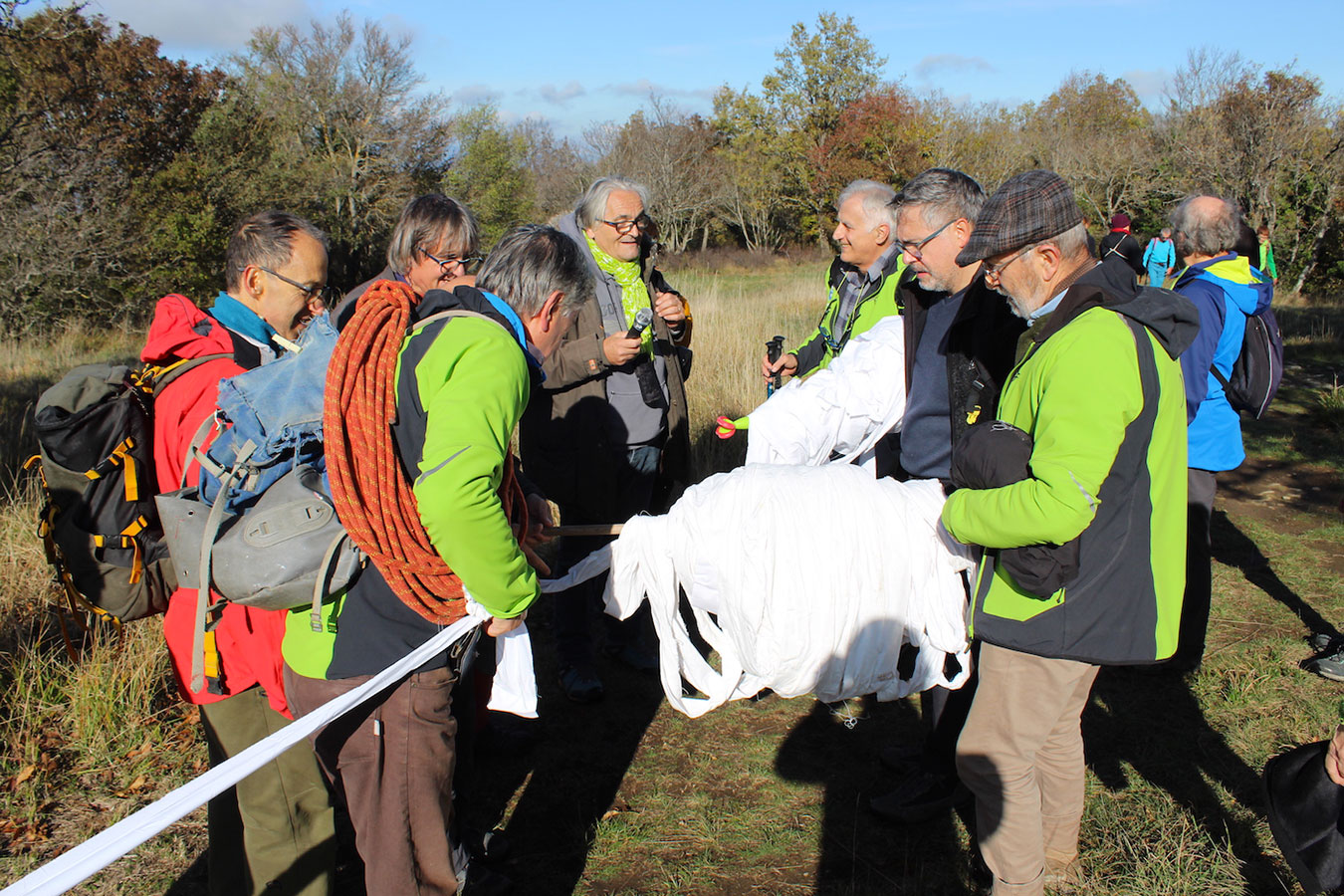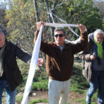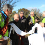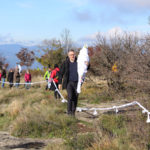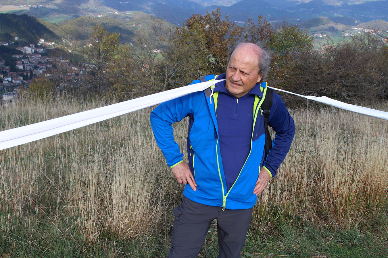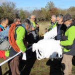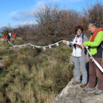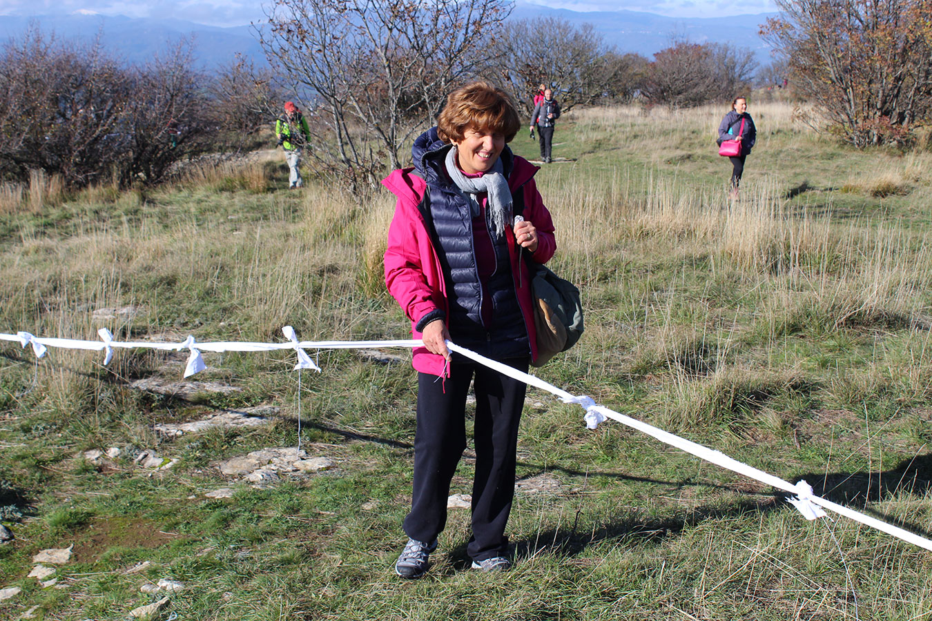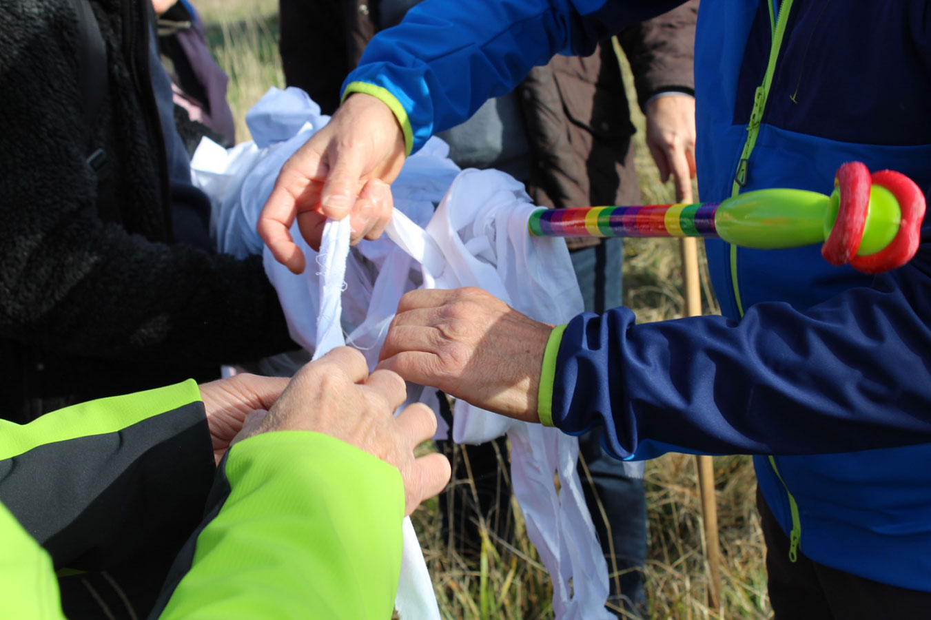 Una bella giornata di sole, non troppo fredda, ha rappresentato il contesto ideale per l’evento “Legarsi alla Pietra”, che si è svolto domenica mattina a Bismantova. Da un’idea dell’artista Ermanio Beretti, è nato questo evento di “arte relazionale”, che è stato insieme anche di Land Art, e che ha coinvolto circa 100 persone nel ruolo di “performer”, chiamati a sorreggere 3 km di una “fune povera” realizzata con lenzuola, vecchie corde, funi da arrampicata annodate, realizzata nelle scorse settimane con ben 1500 nodi. La performance ha preso corpo sul Pianoro sommitale della Pietra di Bismantova la vigilia del giorno dedicato a San Martino. “Siamo stati fortunati” ha spiegato Ermanio alla chiusura dell’ultimo nodo che ha chiuso il cerchio. “Come dice il vecchio adagio contadino l’estate di San Martino dura tre giorni e un pochino, così abbiamo avuto in dono un giorno limpidissimo e insieme ci siamo annodati e accordati a questo luogo, simbolo di una relazione profonda tra sacro e natura. Ricordiamoci che ogni modo corrisponde a un pensiero: oggi ne possiamo formulare tanti, tornando a casa. Sono infatti 1500 i nodi che ho fatto alle vecchie lenzuola”. La gente ha risposto alla chiamata e in circa cento persone si sono radunate in piazzale Dante verso le 10 del mattino. Afferma l’assessore alla Cultura di Castelnovo, Emanuele Ferrari: “All’evento erano presenti le due sezioni CAI di Castelnovo Monti e Reggio Emilia, alcuni esponenti dei Gruppi di Cammino, appassionati di trekking, giovani e famiglie, insegnanti e le due dirigenti delle scuole superiori, cittadini che insieme a Ermanio hanno srotolato 3 km di lenzuola ridotte in strisce e annodate, offerte gentilmente dalla ditta Ellebi di Luca Benassi. Molti anche i contributi di persone accorse sul posto con bende, vecchie corde, anche da arrampicata: tra tutti il materiale più originale è stato senza dubbio costituito da vecchie fasce da neonato ricamate: su una di queste, proprio in prossimità del nodo finale, la scritta “Cuor Mio”, a chiudere anche simbolicamente il cerchio di una giornata che probabilmente continuerà a battere davvero nel cuore di ciascuno dei partecipanti”.
